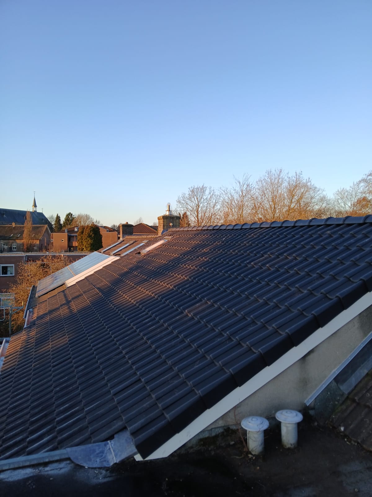 Dakrenovatie Ooij. Bij dit project hebben we dit zwaar verouderde dak compleet gerenoveerd. Asbest laten verwijderen. Nieuwe isolatieplaten geplaatst en afgewerkt met nieuwe pannen.